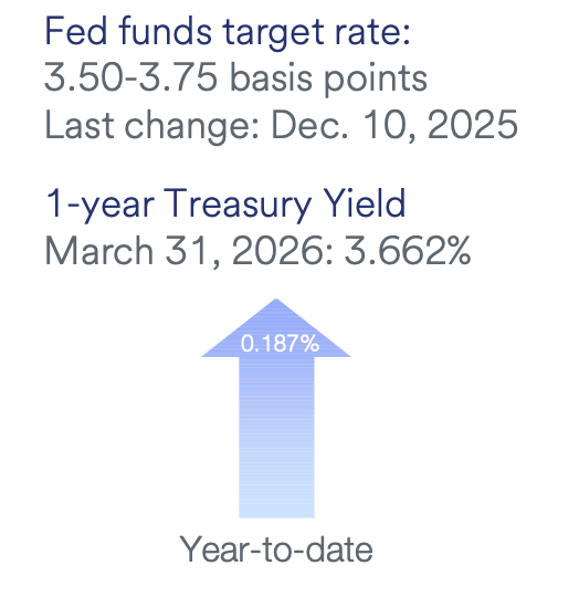 Monetary Policy – The Fed paused its easing cycle in Q1, holding the federal funds rate at 3.50% to 3.75% in January and March Federal Open Market Committee (FOMC) meetings. Governors Waller and Miran dissented in January in favor of a 25 basis points (bps) cut, with Miran again dissenting in March. The Fed noted stable unemployment and uncertainty from Middle East developments, while continuing reserve management purchases (RMPs) of Treasury bills at about $40 billion per month, expected to taper to $20 to $25 billion per month beginning this summer.